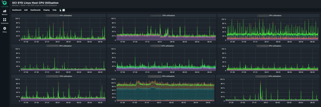 The first step in implementing burstable instances is identifying which workloads are good candidates. We used Checkmk, our existing monitoring platform, to analyse CPU utilisation patterns across our entire OCI fleet.